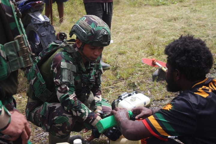 Batamclick.com, PUNCAK JAYA — Di balik sejuknya udara pegunungan Distrik Wanenggobak, semangat gotong royong antara prajurit TNI dan masyarakat lokal tampak menyala. Personel Satgas Kewilayahan RI–PNG Yonif 136/Tuah Sakti menggelar karya bakti pembersihan lingkungan sekaligus pembukaan lahan perkampungan baru, Sabtu (28/2/2026).