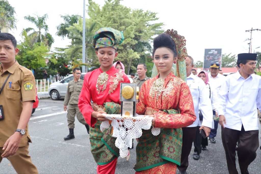 BATAMCLICK.COM: Setelah menerima penghargaan Piala Adipura keempat dari Menteri LHK, Siti Nurbaya di Gedung Manggala Wanabakti Jakarta Pusat, Selasa (28/2/2023), Bupati Karimun Aunur Rafiq kemudian menyambut kedatangan Piala Adipura tersebut di Rumah Dinas Bupati, Rabu (1/3/2023).