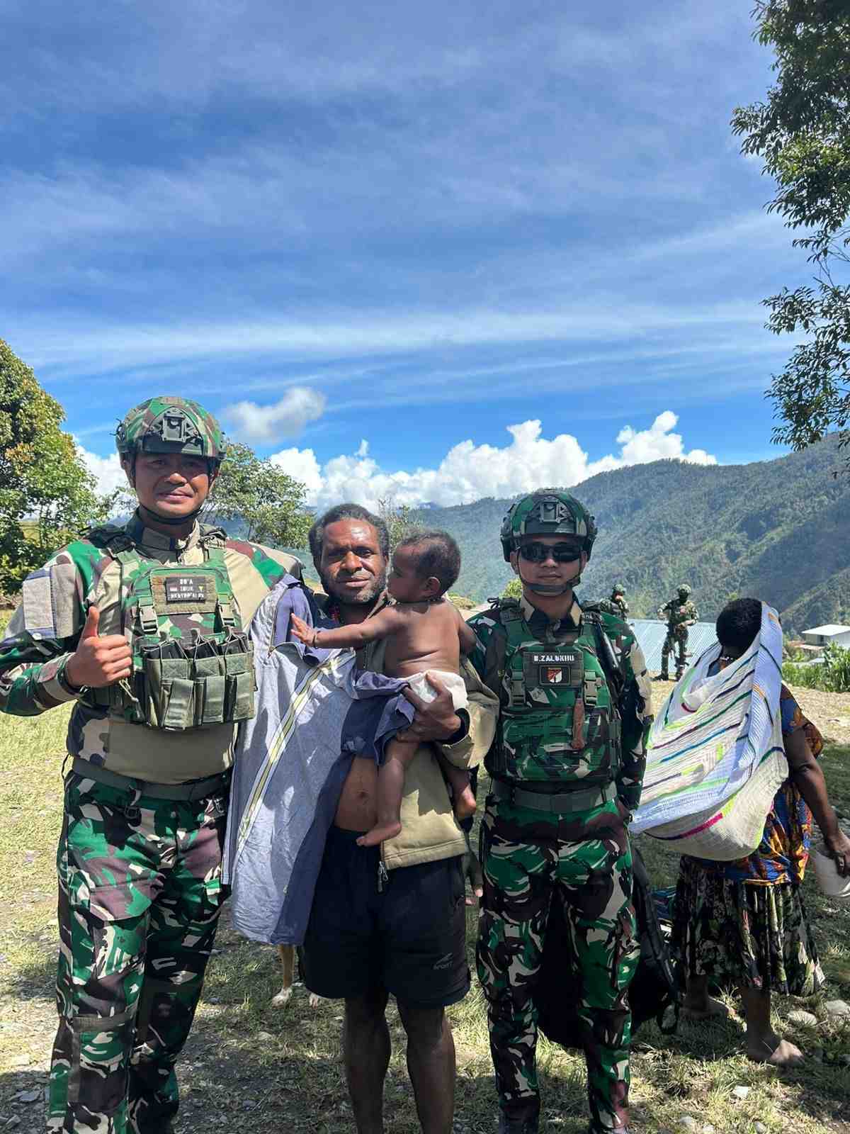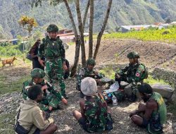 Kehadiran para prajurit disambut antusias oleh warga Distrik Pangaleme. Interaksi langsung yang dilakukan personel Satgas di depan teras rumah warga menciptakan suasana akrab dan menghapus sekat antara aparat dengan masyarakat sipil.