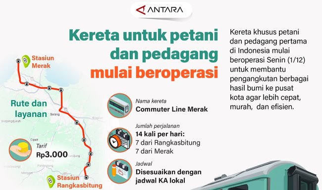 BATAMCLICK.COM: Kereta khusus petani dan pedagang pertama di Indonesia mulai beroperasi Senin (1/12) untuk membantu pengangkutan berbagai hasil bumi ke pusat kota agar lebih cepat, murah, dan efisien.