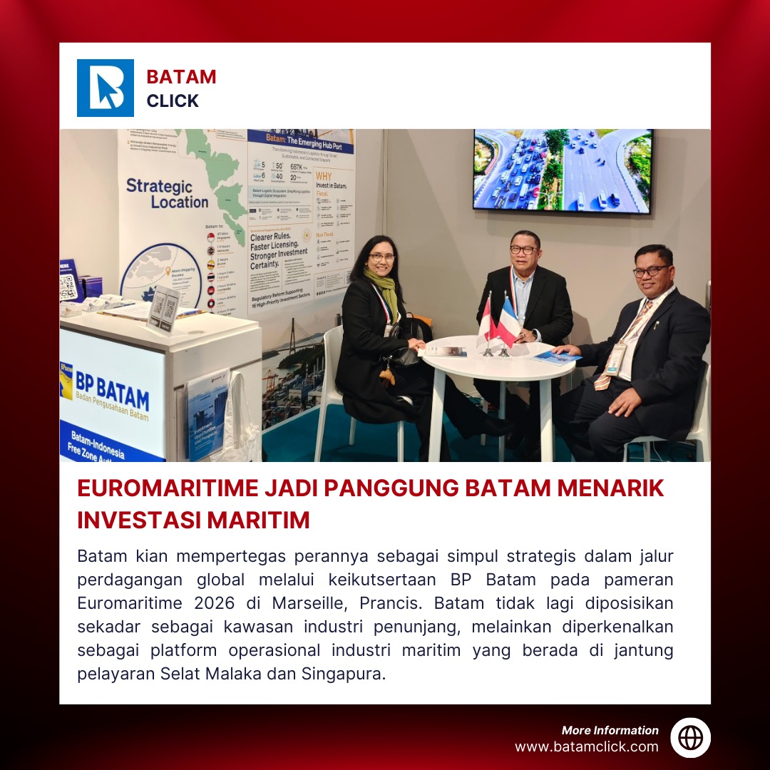 Beranda Kepri BP Batam Batam Mulai Dilirik Investor Maritim BP Batam, Headline, INFO GRAFIS, Kepri Batam Mulai Dilirik Investor MaritimNoviantoKamis, 05/02/2026 - 06:25 WIB Baca JugaKKP tangkap tiga kapal asing dan selamatkan potensi rugi Rp20,2 miliarMenkum: Sinergi pemerintah dengan notaris perkuat kepastian hukumPemkot Batam percepat implementasi QRIS guna perkuat digitalisasiRutan Batam gelar pemeriksaan kesehatan gratis bagi pengunjungJNJ Specialist Dental Centre Raih Status Invisalign Diamond Elite ProviderBupati Cen Sui Lan Luncurkan Bantuan Pangan Tahap II, Targetkan Pembangunan Gudang Bulog di Wilayah Kepulauan