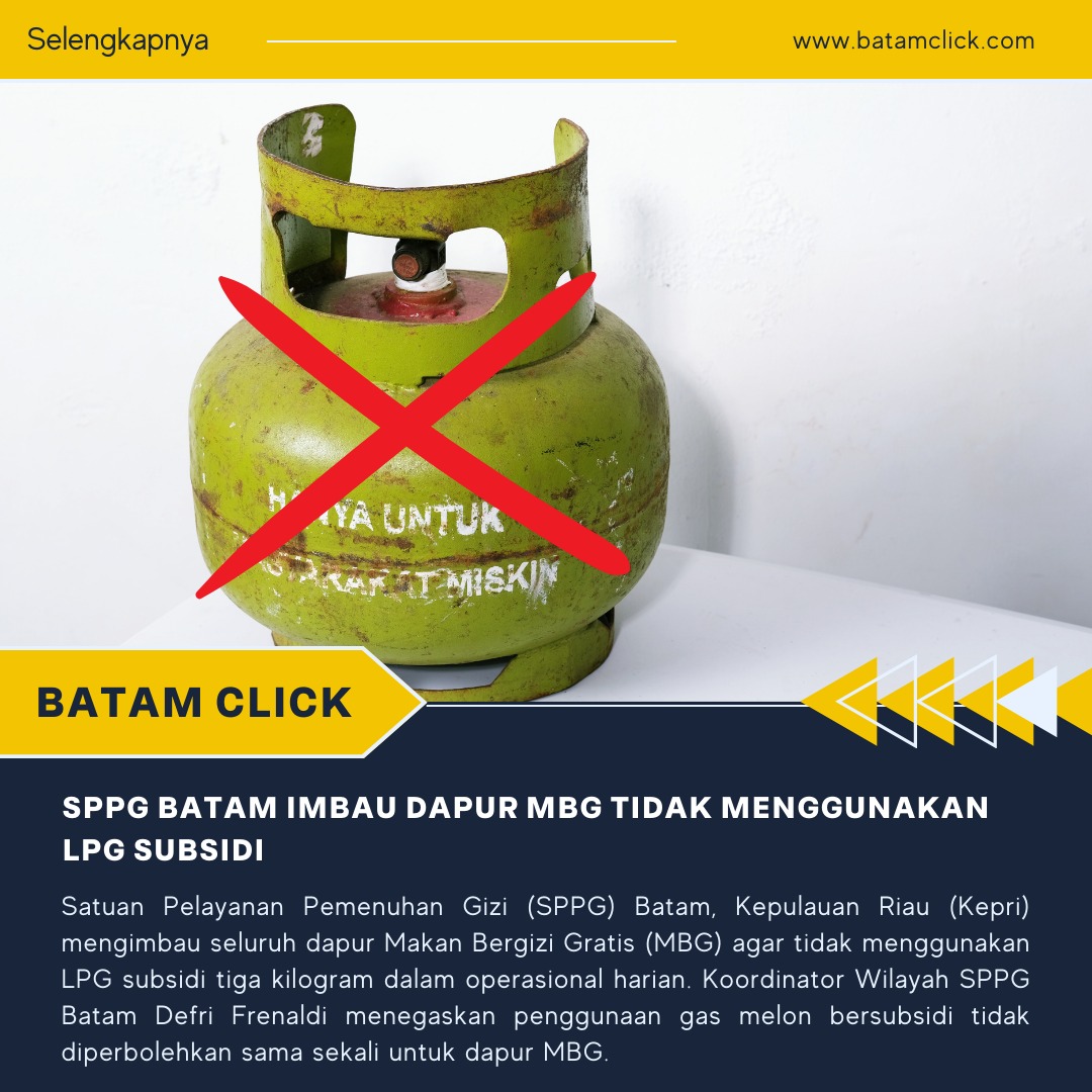 Beranda Kepri Batam DAPUR MBG JANGAN PAKAI GAS MELON Batam, Headline, INFO GRAFIS, Kepri DAPUR MBG JANGAN PAKAI GAS MELONNoviantoKamis, 05/02/2026 - 06:45 WIB Baca JugaKKP tangkap tiga kapal asing dan selamatkan potensi rugi Rp20,2 miliarMenkum: Sinergi pemerintah dengan notaris perkuat kepastian hukumPemkot Batam percepat implementasi QRIS guna perkuat digitalisasiRutan Batam gelar pemeriksaan kesehatan gratis bagi pengunjungJNJ Specialist Dental Centre Raih Status Invisalign Diamond Elite ProviderBupati Cen Sui Lan Luncurkan Bantuan Pangan Tahap II, Targetkan Pembangunan Gudang Bulog di Wilayah Kepulauan