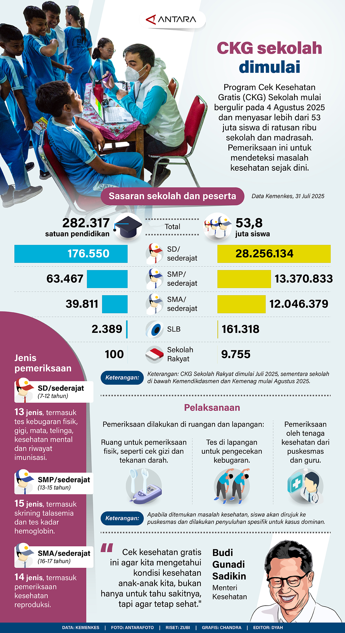 Program Cek Kesehatan Gratis (CKG) Sekolah mulai bergulir pada 4 Agustus 2025