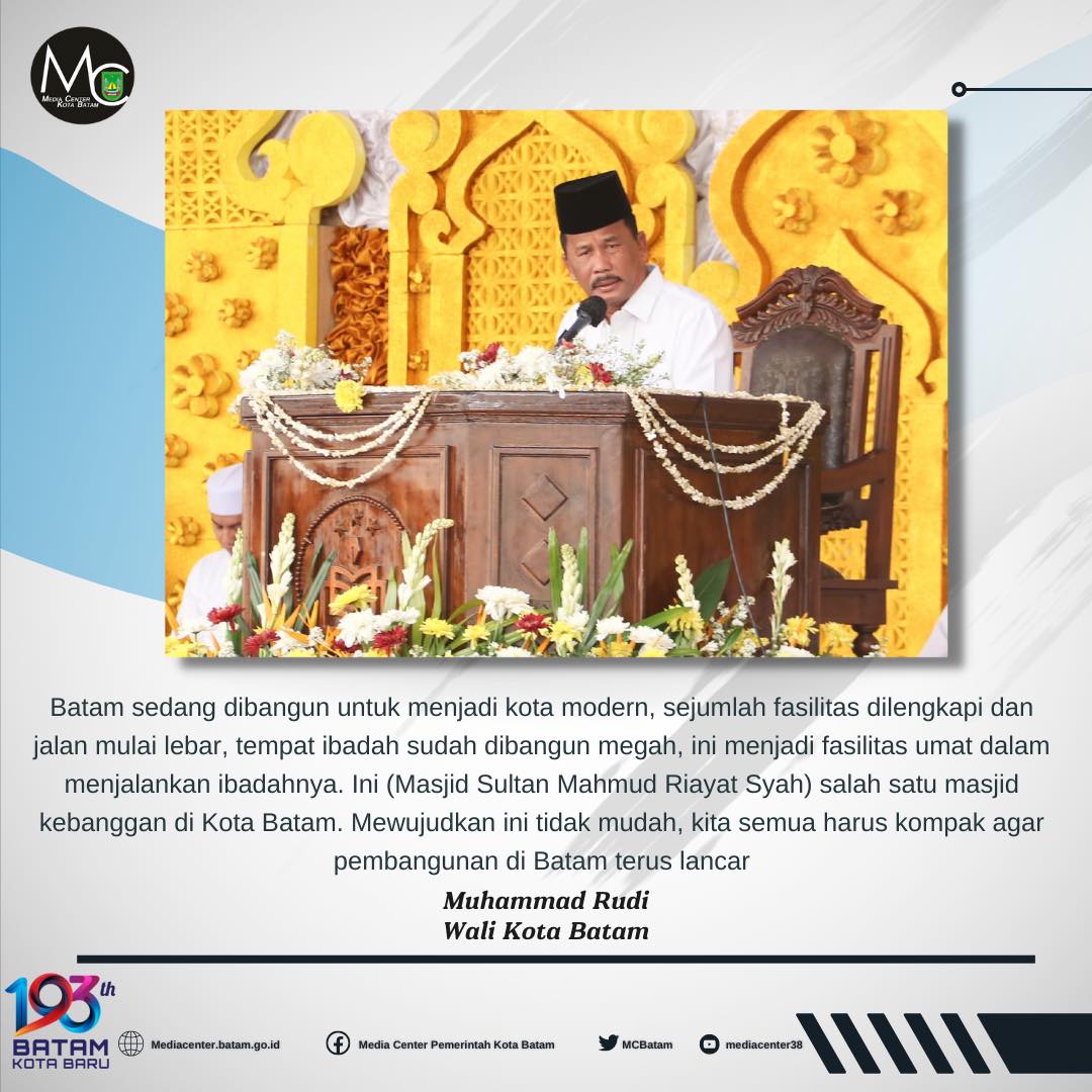 โIni (Masjid Sultan Mahmud Riayat Syah) salah satu masjid kebanggan di Kota Batam,โ ujarnya.