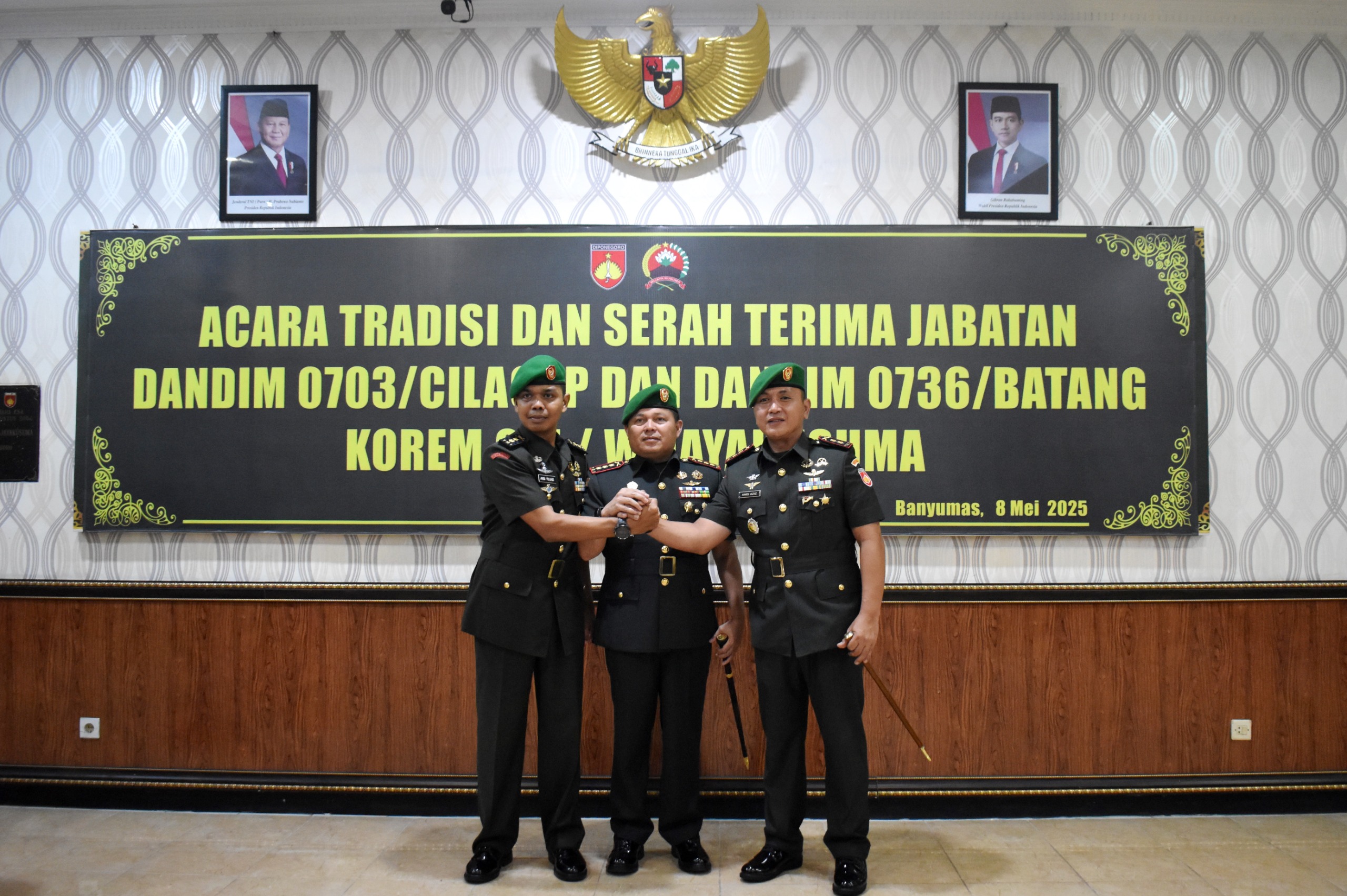 Cilacap – Letkol Inf Andi Aziz, S.Hub.Int., secara resmi menjabat sebagai Komandan Kodim 0703/Cilacap, menggantikan pejabat sebelumnya yaitu Letkol Inf Andi Yuliazi, S.E., M.I.P., yang mendapat amanat baru menjadi Wakil Asisten Personalia Kopassus. Serah Terima Jabatan (Sertijab) tersebut dipimpin langsung oleh Danrem 071/Wijayakusuma, Kolonel Inf Jamaluddin, S.I.P., M.I.P., bertempat di Makorem 071/Wijayakusuma, Kamis (8/5/2025).