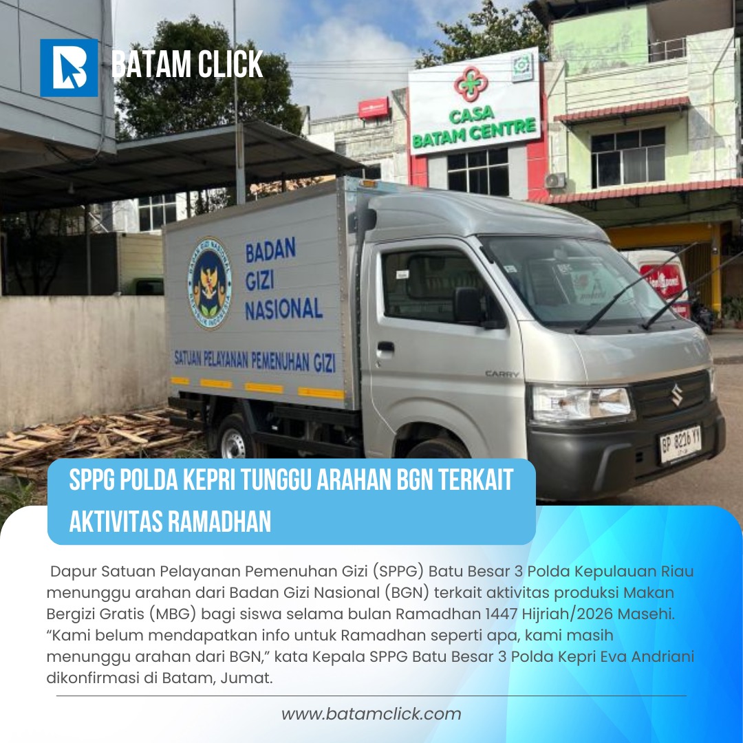 Beranda Headline SPPG Polda Kepri Tunggu Instruksi Operasional Ramadhan Headline, INFO GRAFIS, Kepri SPPG Polda Kepri Tunggu Instruksi Operasional RamadhanNoviantoSelasa, 10/02/2026 - 05:57 WIB Baca JugaKKP tangkap tiga kapal asing dan selamatkan potensi rugi Rp20,2 miliarMenkum: Sinergi pemerintah dengan notaris perkuat kepastian hukumPemkot Batam percepat implementasi QRIS guna perkuat digitalisasiRutan Batam gelar pemeriksaan kesehatan gratis bagi pengunjungJNJ Specialist Dental Centre Raih Status Invisalign Diamond Elite ProviderBupati Cen Sui Lan Luncurkan Bantuan Pangan Tahap II, Targetkan Pembangunan Gudang Bulog di Wilayah Kepulauan