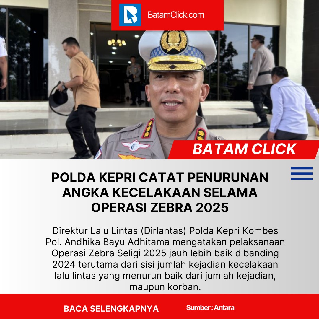 Beranda Headline Selama Operasi Zebra, Kecelakaan di Kepri Turun Drastis Headline, INFO GRAFIS Selama Operasi Zebra, Kecelakaan di Kepri Turun DrastisNoviantoMinggu, 14/12/2025 - 20:36 WIB Baca JugaCuma DP Rp2 Jutaan, Honda Vario 160 Langsung Bisa Dibawa Pulang!KKP tangkap tiga kapal asing dan selamatkan potensi rugi Rp20,2 miliarMenkum: Sinergi pemerintah dengan notaris perkuat kepastian hukumPemkot Batam percepat implementasi QRIS guna perkuat digitalisasiRutan Batam gelar pemeriksaan kesehatan gratis bagi pengunjungJNJ Specialist Dental Centre Raih Status Invisalign Diamond Elite Provider