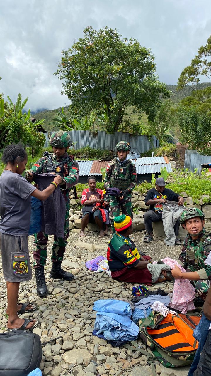 Sebagai wujud kepedulian nyata, Satgas Yonif 136/TS tidak datang dengan tangan hampa. Mereka membawa bantuan berupa pakaian layak pakai yang diperuntukkan bagi anak-anak, dewasa, hingga orang tua di Distrik Pangaleme.