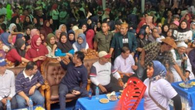 Sejak pagi buta, warga telah berdatangan ke lokasi. Ketika HM Rudi dan Aunur Rafiq tiba di tempat acara, sorakan dukungan untuk pasangan ini langsung bergema. “Rudi-Rafiq, menang, menang!” teriak ribuan peserta dengan penuh semangat.