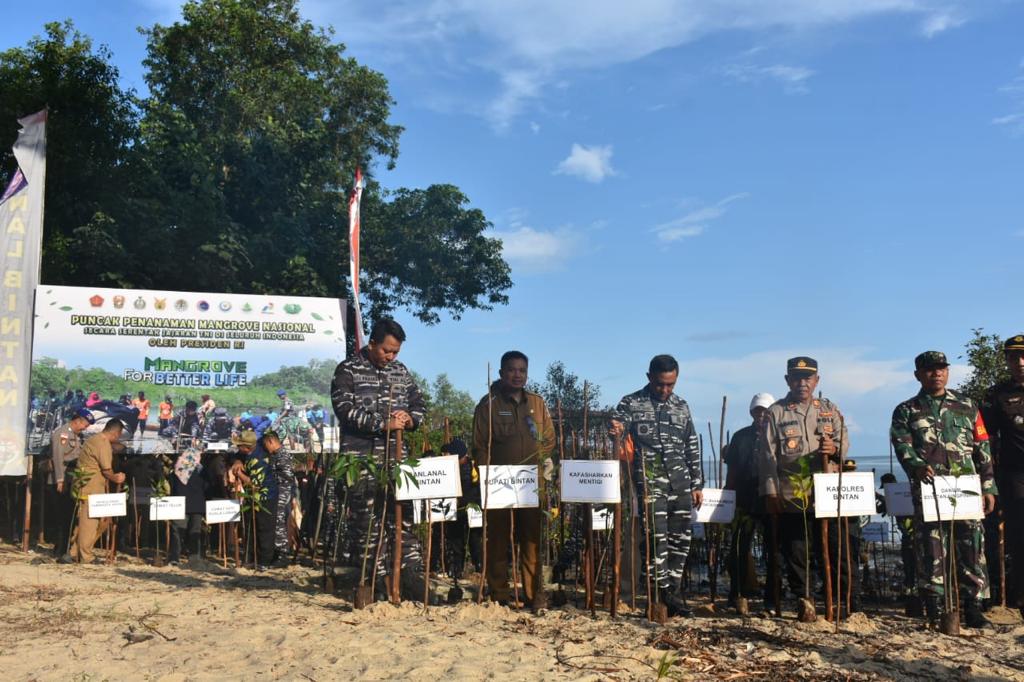 Penanaman secara serentak yang dilaksanakan di Bintan saat ini dilakukan secara serentak dari Sabang sampai Merauke yang melibatkan dari jajaran TNI, Polri, Instansi Pemerintah lainnya, Saka Bahari dan Masyarakat pulau Bintan yang bertujuan agar laut menjadi subur dan terhindar dari abrasi serta menyebarluaskan dan memberi contoh kepada masyarakat luas bahwa pentingnya masyarakat khususnya masyarakat pesisir untuk melestarikan Mangrove. Dalam pesannya selesai melaksanakan penanaman Mangrove secara serentak Presiden RI menghimbau agar selesai penanaman Mangrove ini agar dirawat dan dipelihara dengan baik dengan harapan mangrove-mangrove tersebut bisa hidup semua.