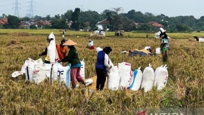 BATAMCLICK.COM: Siang itu, beberapa petani di daerah Cirebon, berkumpul di atas terpal, menuang dan mengemas gabah hasil panen ke dalam karung-karung besar.