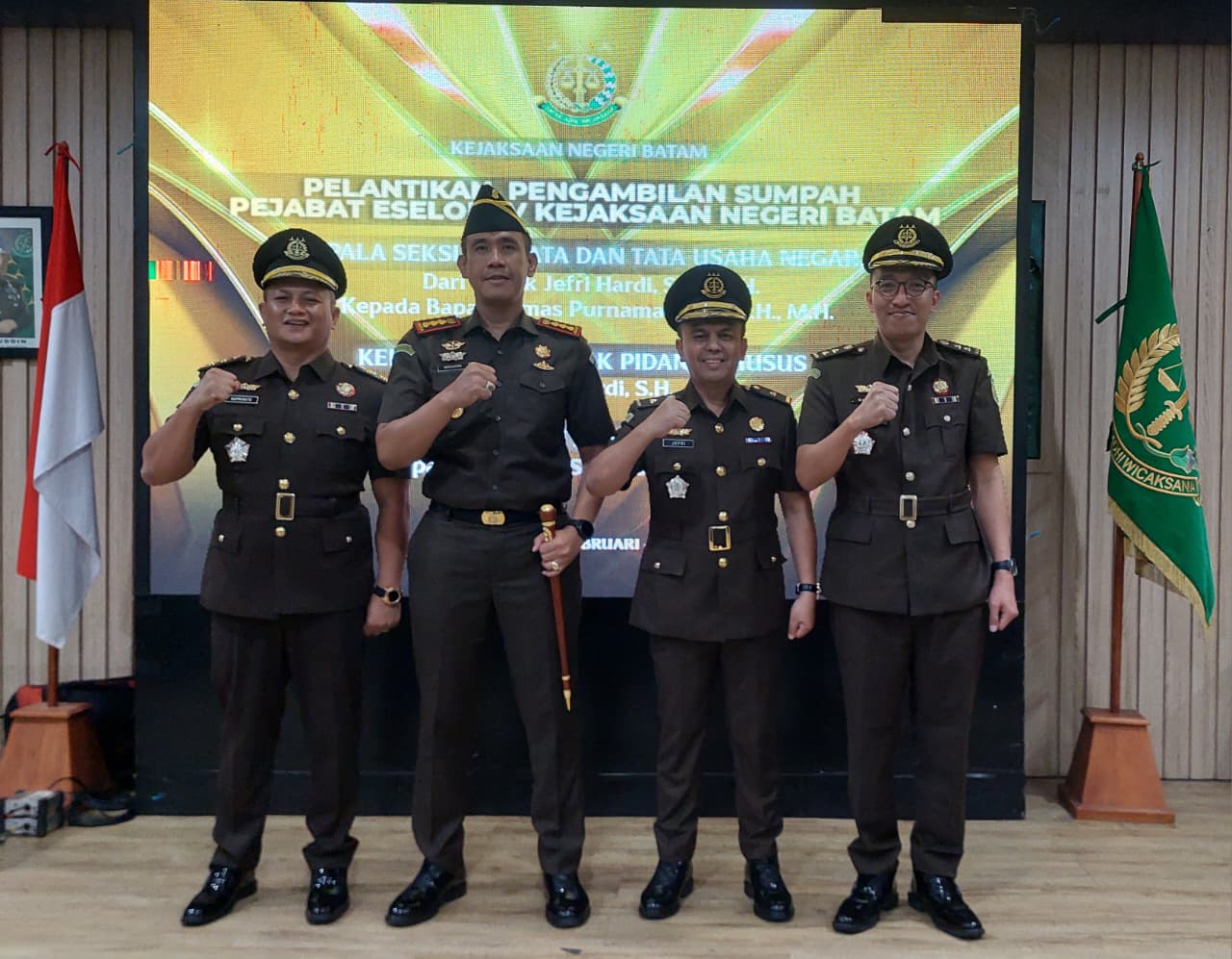 Batamclick.com, BATAM — Kepala Kejaksaan Negeri (Kajari) Batam, I Wayan Wiradarma, resmi melantik dan mengambil sumpah jabatan tiga pejabat struktural eselon IV di lingkungan Kejaksaan Negeri Batam. Prosesi pelantikan yang menjadi bagian dari penyegaran organisasi ini berlangsung di Aula Kejari Batam pada Rabu (18/2/2026).