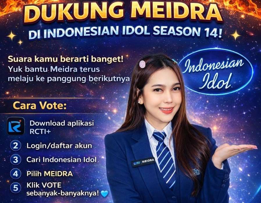 “Suara kamu berarti banget! Yuk, bantu Meidra terus melaju ke panggung berikutnya,” tulis pesan dalam ajakan dukungan tersebut. Jangan biarkan langkah sang mutiara Kepri terhenti di sini. Mari kita buktikan bahwa talenta lokal mampu bersinar paling terang di panggung nasional.