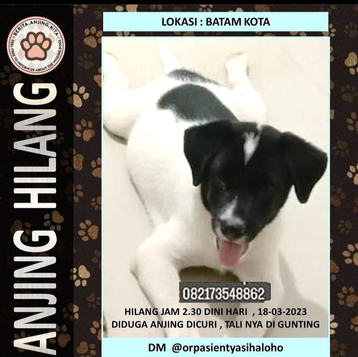 “Jika Anda melihat atau menemukan anjing saya, mohon hubungi saya di nomor telepon 082173548862,” tutupnya.(lis)