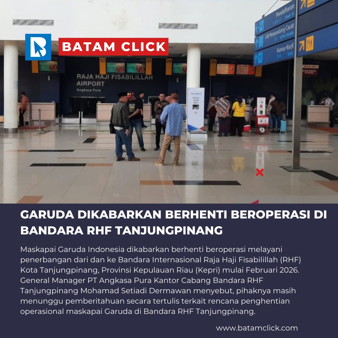 Beranda Kepri Tanjungpinang GARUDA TUTUP BUKU DI BANDARA TANJUNGPINANG Headline, INFO GRAFIS, Kepri, Tanjungpinang GARUDA TUTUP BUKU DI BANDARA TANJUNGPINANGNoviantoMinggu, 25/01/2026 - 14:34 WIB Baca JugaCuma DP Rp2 Jutaan, Honda Vario 160 Langsung Bisa Dibawa Pulang!KKP tangkap tiga kapal asing dan selamatkan potensi rugi Rp20,2 miliarMenkum: Sinergi pemerintah dengan notaris perkuat kepastian hukumPemkot Batam percepat implementasi QRIS guna perkuat digitalisasiRutan Batam gelar pemeriksaan kesehatan gratis bagi pengunjungJNJ Specialist Dental Centre Raih Status Invisalign Diamond Elite Provider