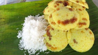 Kue putu piring adalah kue tradisional yang terbuat dari tepung beras yang diisi dengan gula kelapa dan dikukus. Kue ini bisa ditemukan di Pasar Penuin dengan harga Rp 2.000 per biji. Rasanya manis dan lembut, cocok untuk camilan ringan.