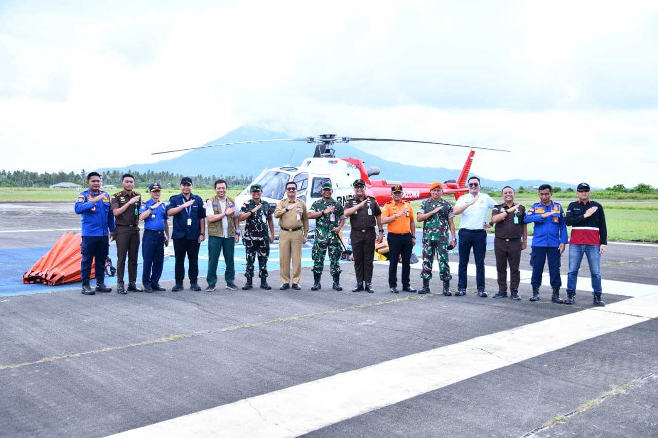 Peninjauan meliputi pesawat operasi, helikopter BNPB, serta gelar kendaraan pemadam kebakaran di depan Base Ops Lanud RSA.